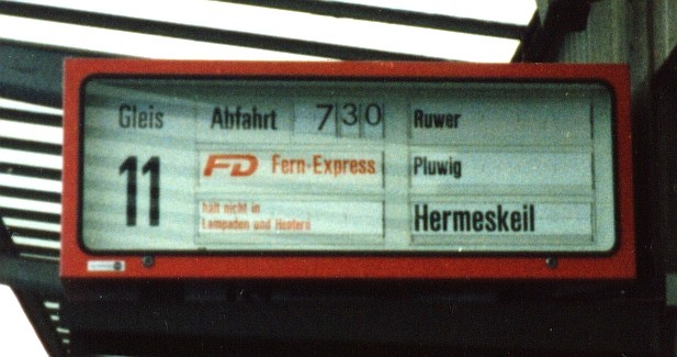 Zugzielanzeiger des FD "Klingender Moselländer" von Trier nach Hermeskeil (und Simmern) am 11.06.1984