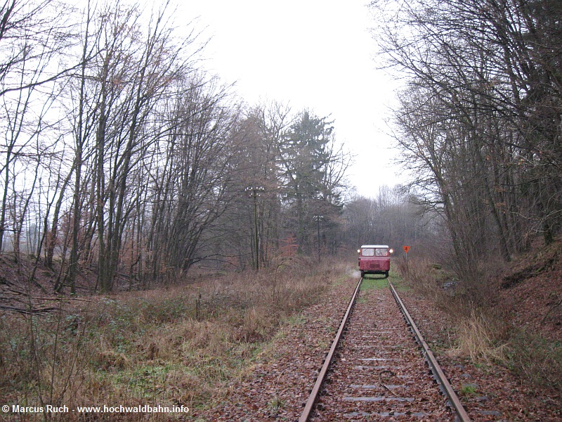 ![]() Die Streckenskizze von 1913 zeigt die Anbindung der Verbindungskurve und die Blockstelle Buss ![]() Links ist der Abzweig Richtung Mariahütte schwach zu erkennen. Der Skl steht ca. 50 m vor dem im Streckenband eingezeichneten Gewölbe-Durchlass. ![]() Nocheinmal aus etwas weiterer Entfernung am 11.01.2014: Links neben dem Telegrafenmasten in Bildmitte verlief die Verbindungskurve. ![]() Das Fundament der Blockstation Buss mit Resten der Hebelbank. Interessanterweise stand die Blockstelle über einem Bach. ![]() Das Gleisbett der Verbindungskurve direkt am Abzweig. ![]() Blick aus der Gegenrichtung. Links steht der Skl auf dem Streckengleis nach Nonnweiler, geradeaus wäre als nächstes die Einfache Kreuzungsweiche gekommen (s.o.), rechts ist der Rest einer Drahtzugrolle erhalten. ![]() Blick in die Gegenrichtung bei ca. km 0,1 der Verbindungskurve (s. Streckenband unten). ![]() Streckenband der Verbindungskurve ![]() Das Gleis von Nonnweiler (im Hintergrund) nach Wemmetsweiler. Rechts sind Ausläufer eines Firmengeländes zu erkennen. Der Abschnitt ca. km 0,2 bis km 0,4 der Verbindungskurve ist heute vollständig überbaut. ![]() Unmittelbar hier endet heute auch das Streckengleis nach Wemmetsweiler. Ca. 200 Meter weiter in Richtung Mariahütte (Wemmetsweiler) lag die Weiche der Verbindungskurve. ![]() Nochmals der Blick Richtung Bahnhof Nonnweiler. Rechts neben dem Telegrafenmasten mündet das Streckengleis von Türkismühle in den Bf Nonnweiler ein. Der auf der Zeichnung ganz oben eingezeichnete Bahnübergang ist heute aufgelassen, jedoch steht ein Andreaskreuz noch und ist rechts neben dem Kran des Skl zu erkennen. Direkt unter der Autobahnbrücke hat sich früher das ebenfalls eingezeichnete Stellwerk befunden. zurück |