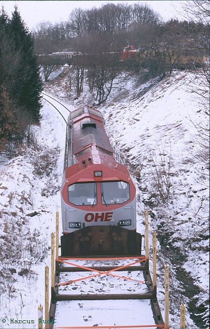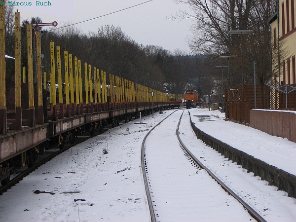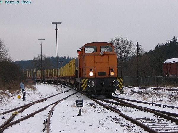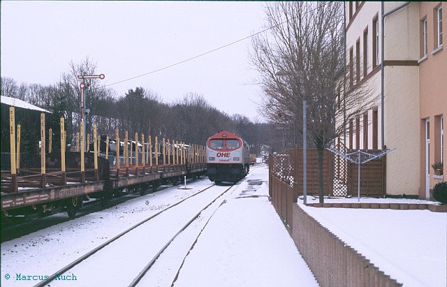 Beladung eines Holzzuges der OHE am 27.01.2005 in Hermeskeil: