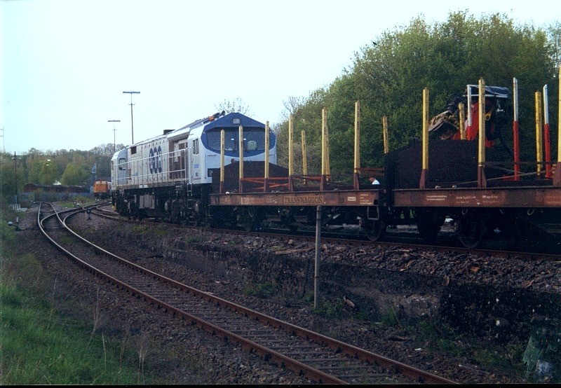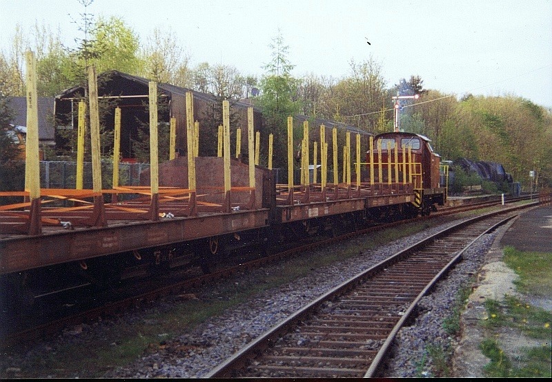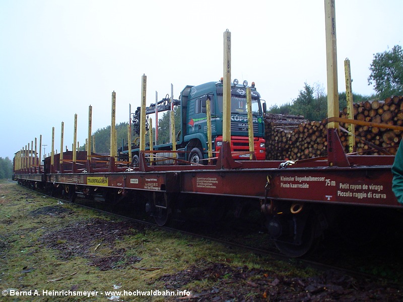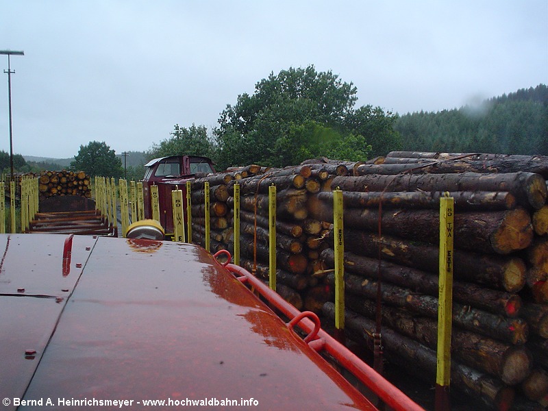 Beladung eines Holzzuges der LTH Oelbau/OHE in Hermeskeil am 02.05.2005: