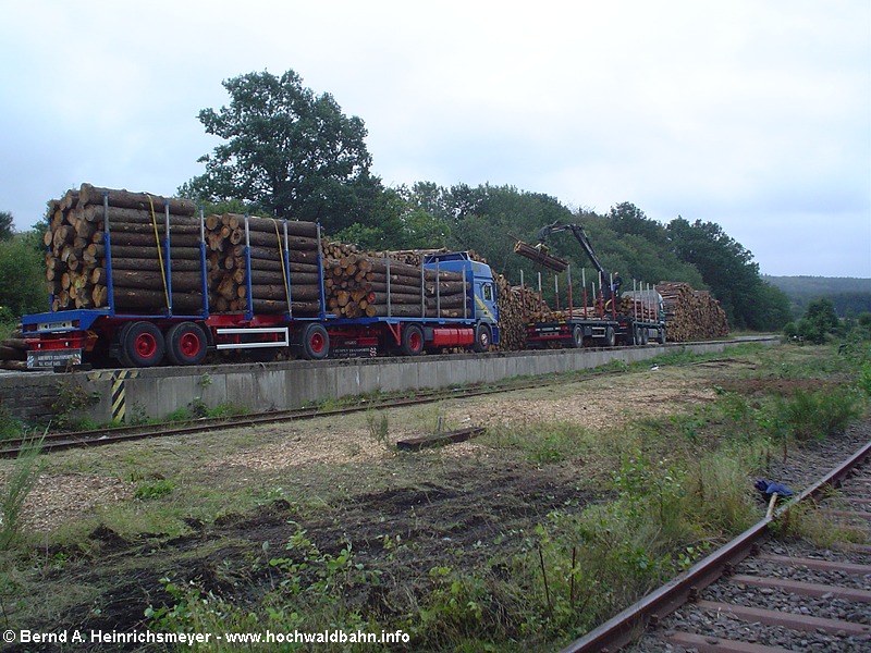 Die Strecke Hermeskeil - Türkismühle wurde zum 01.04.2004 durch die Hochwaldbahn-Gruppe gepachtet. Am 22. und 23.09.2004 verkehrten - nach Instandsetzung der Holzverladebahnhofs - die ersten Güterzüge mit Holz. |
