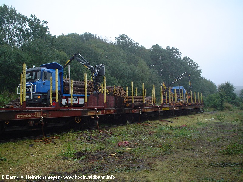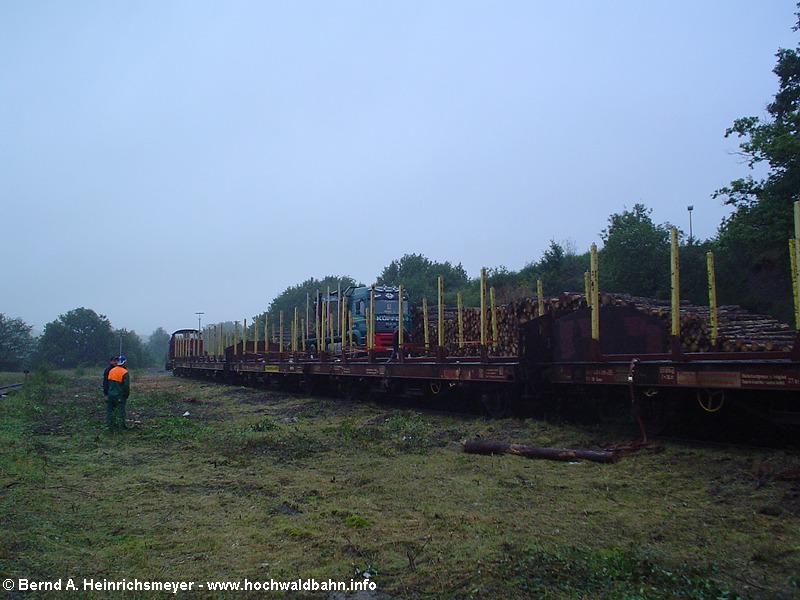 Reaktivierung des Holzverladebahnhofs Hermeskeil - Beladung des ersten Güterzugs am 22.09.2004