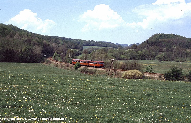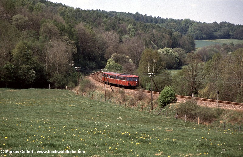 km 71,0 - Haltepunkt (Hp) Gonnesweiler-BostalseeDer Haltepunkt Gonnesweiler-Bostalsee wurde erst im Jahre 2005 für die Touristikzüge Hermeskeil - Türkismühle errichtet. Der Haltepunkt ersetzt den ehem. Haltepunkt Eckelhausen, da der Hp Gonnesweiler-Bostalsee wesentlich günstiger zum Bostalsee gelegen ist. Die Wegstrecke beträgt ca. 1,8 km und lässt sich abseits befahrener Straßen über Wiesenwege bequem zurücklegen. |